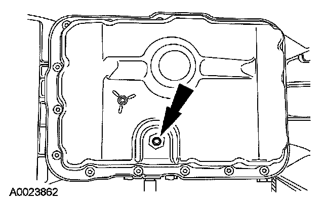 7. Hold the larger drain plug with a wrench and remove the small (center) fluid level indicating plug.