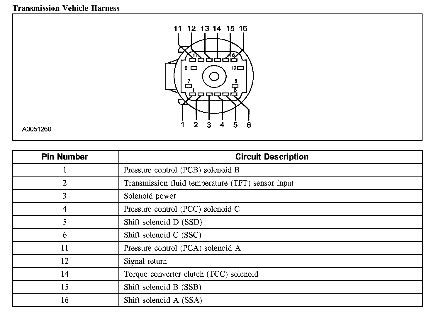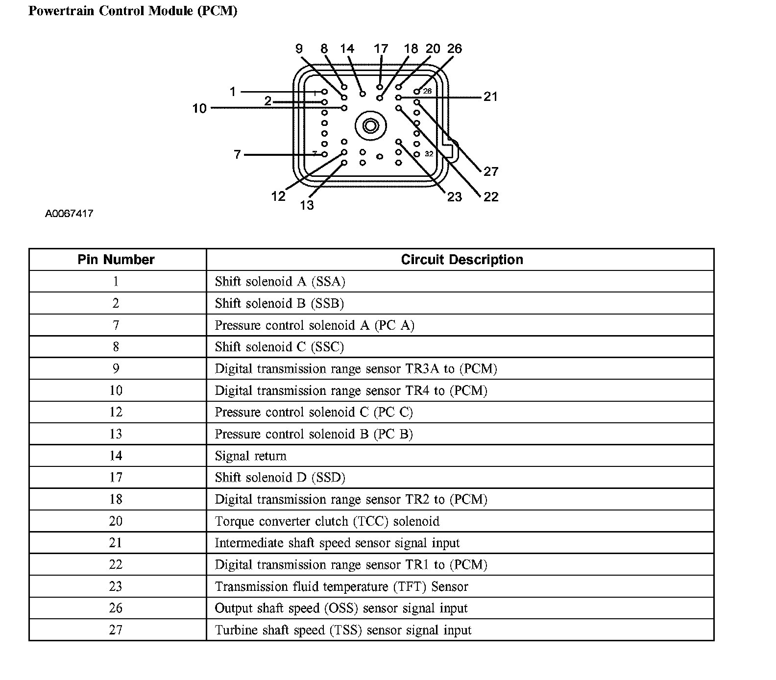 Transmission Connector LayoutsPowertrain Control Module (PCM):