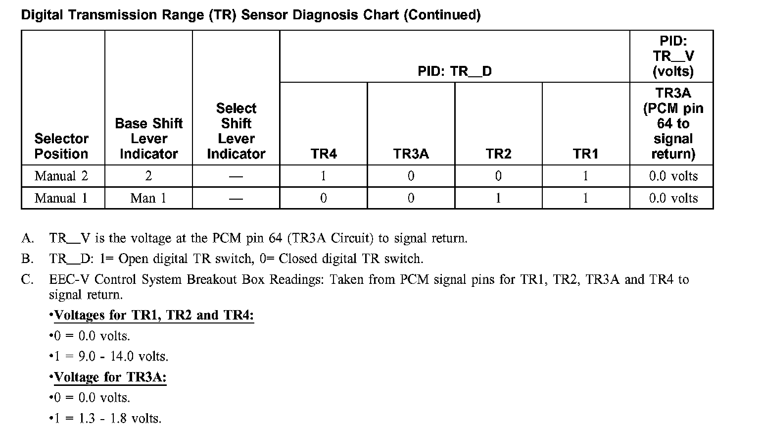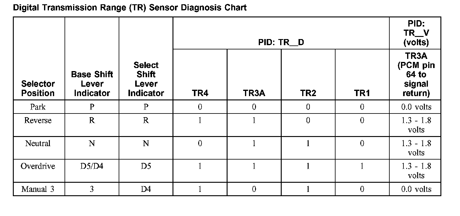 Digital Transmission Range (TR) Sensor Diagnosis Chart (part 2):