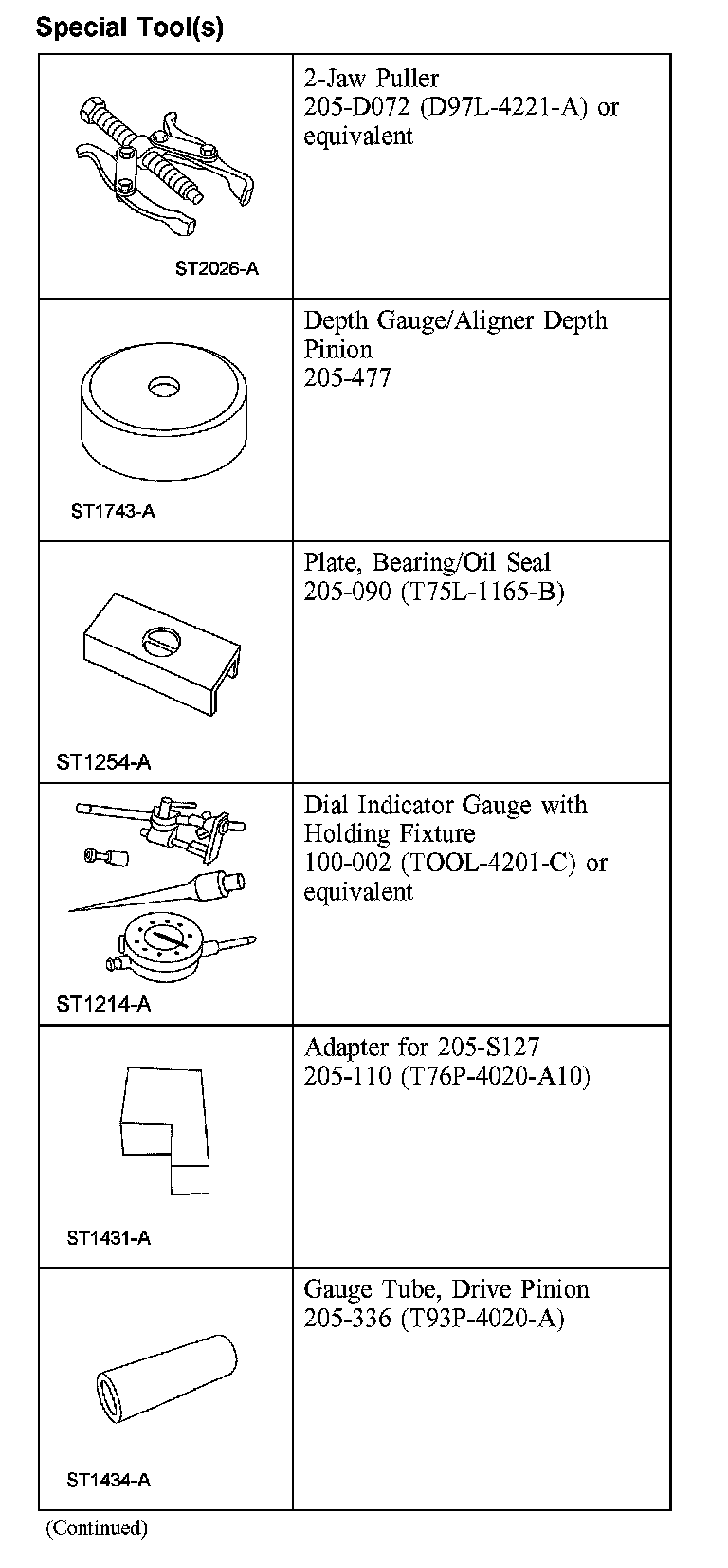 Axle AssemblySpecial Tool(s) (Part 1):