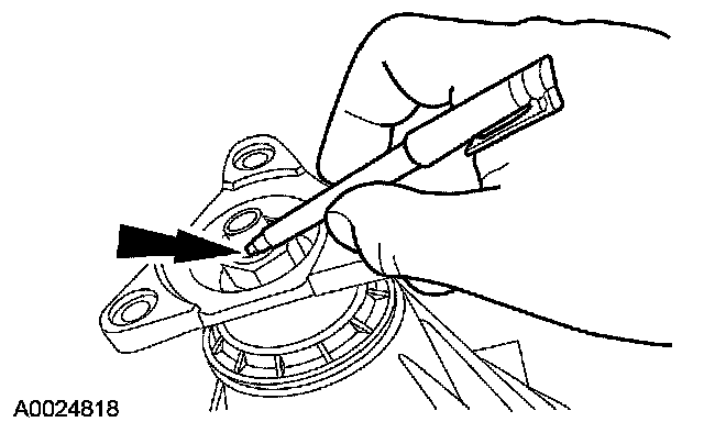 12. Force up the metal flange on the halfshaft housing seal.