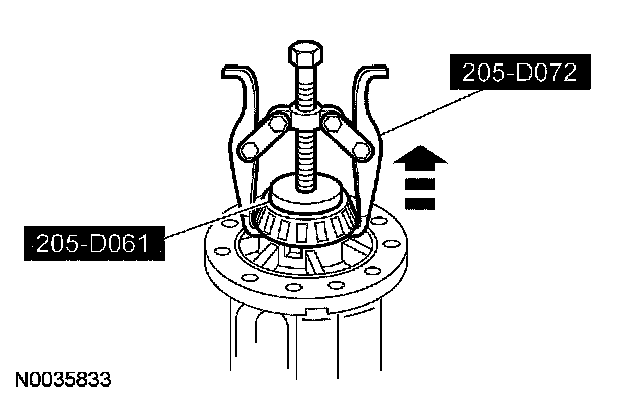 1 Position the special tool under the inner pinion bearing.