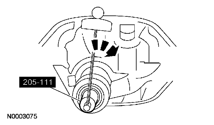 Rotate the special tool several half turns to seat the differential pinion bearings. Position the special tool as shown.