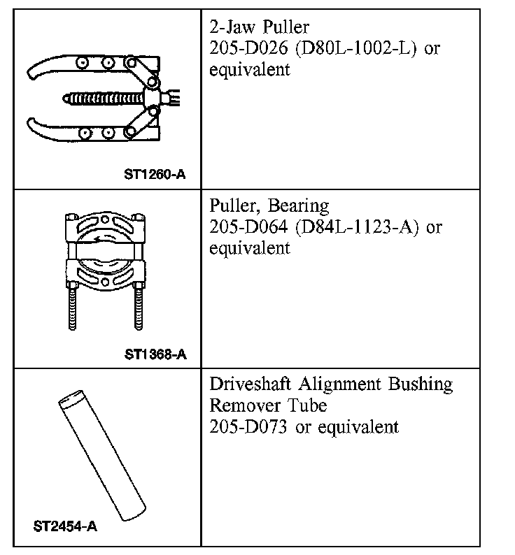 4. Using the special tools, remove the retaining ring and the center bearing and bracket assembly.