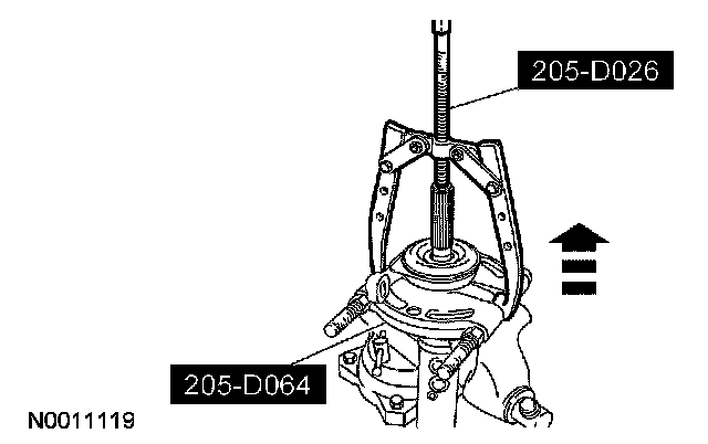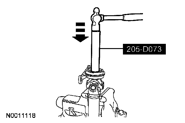 2. Using the special tool, drive the retaining ring and bearing assembly until fully seated on the yoke.
