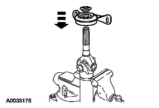 1. Position the center bearing and bracket assembly and the retaining ring on the yoke.