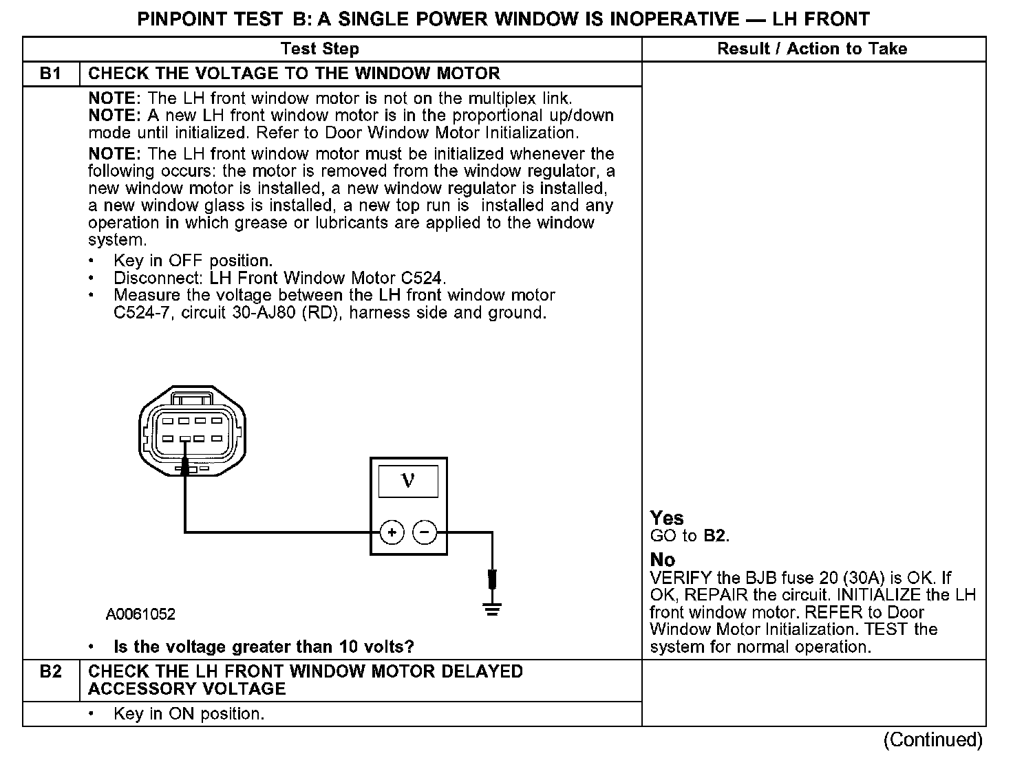 PINPOINT TEST B: A SINGLE POWER WINDOW IS INOPERATIVE - LH FRONTB1-B2: