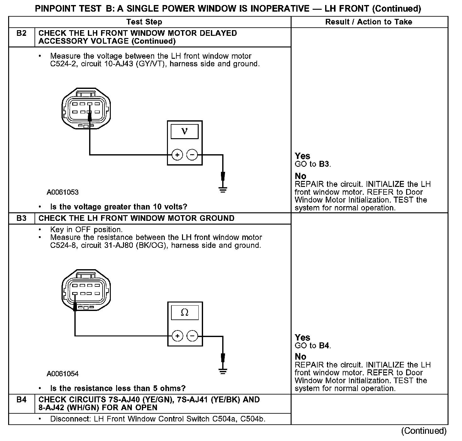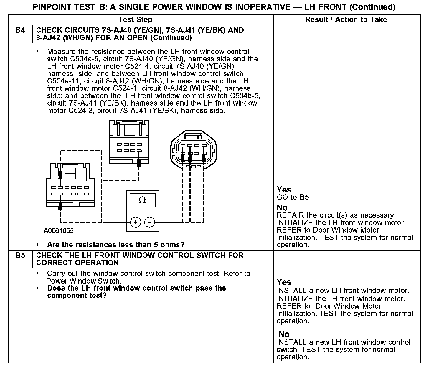Test B: A Single Power Window Is Inoperative - LH Front