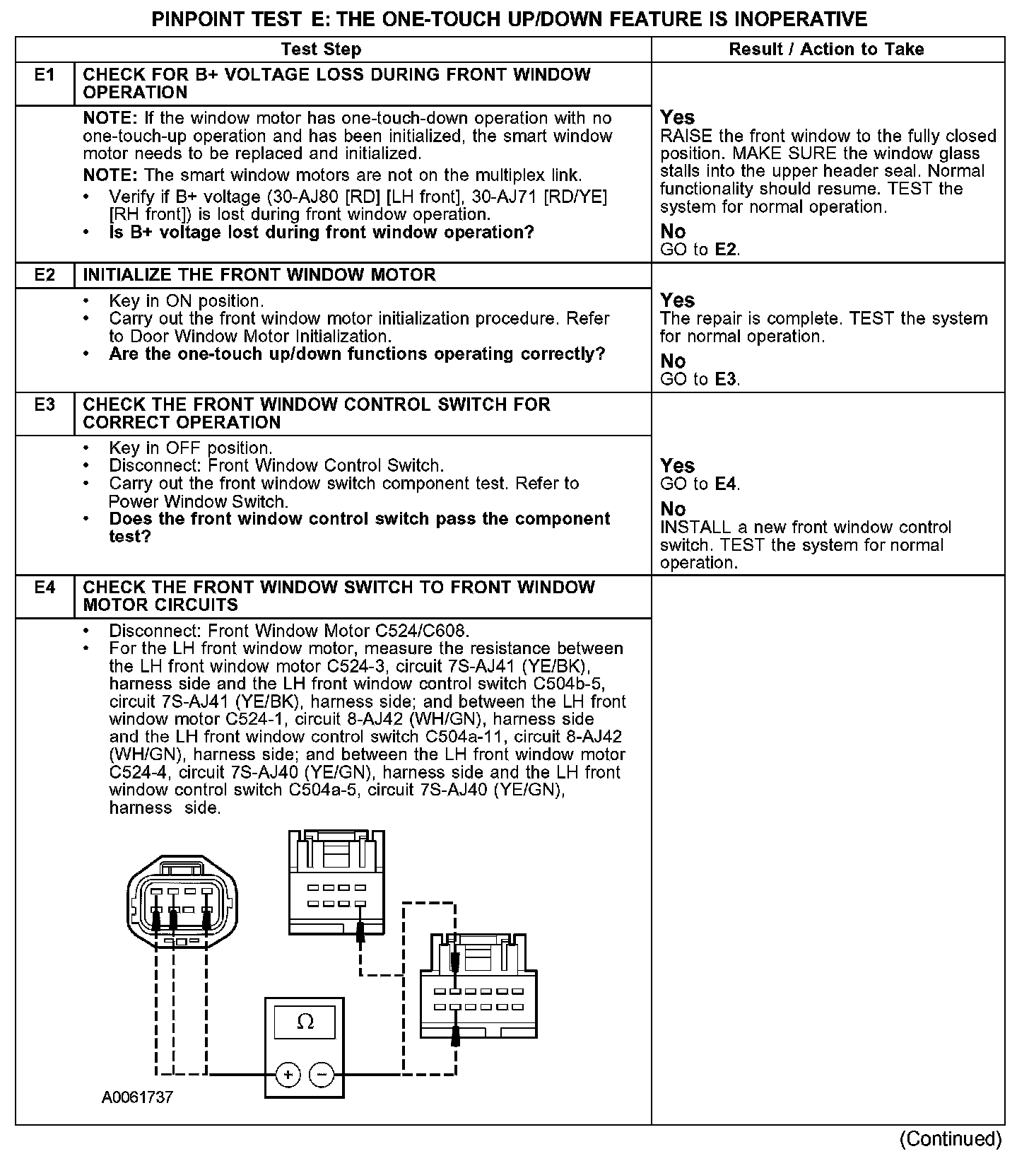 PINPOINT TEST E: THE ONE-TOUCH UP/DOWN FEATURE IS INOPERATIVEE1-E4: