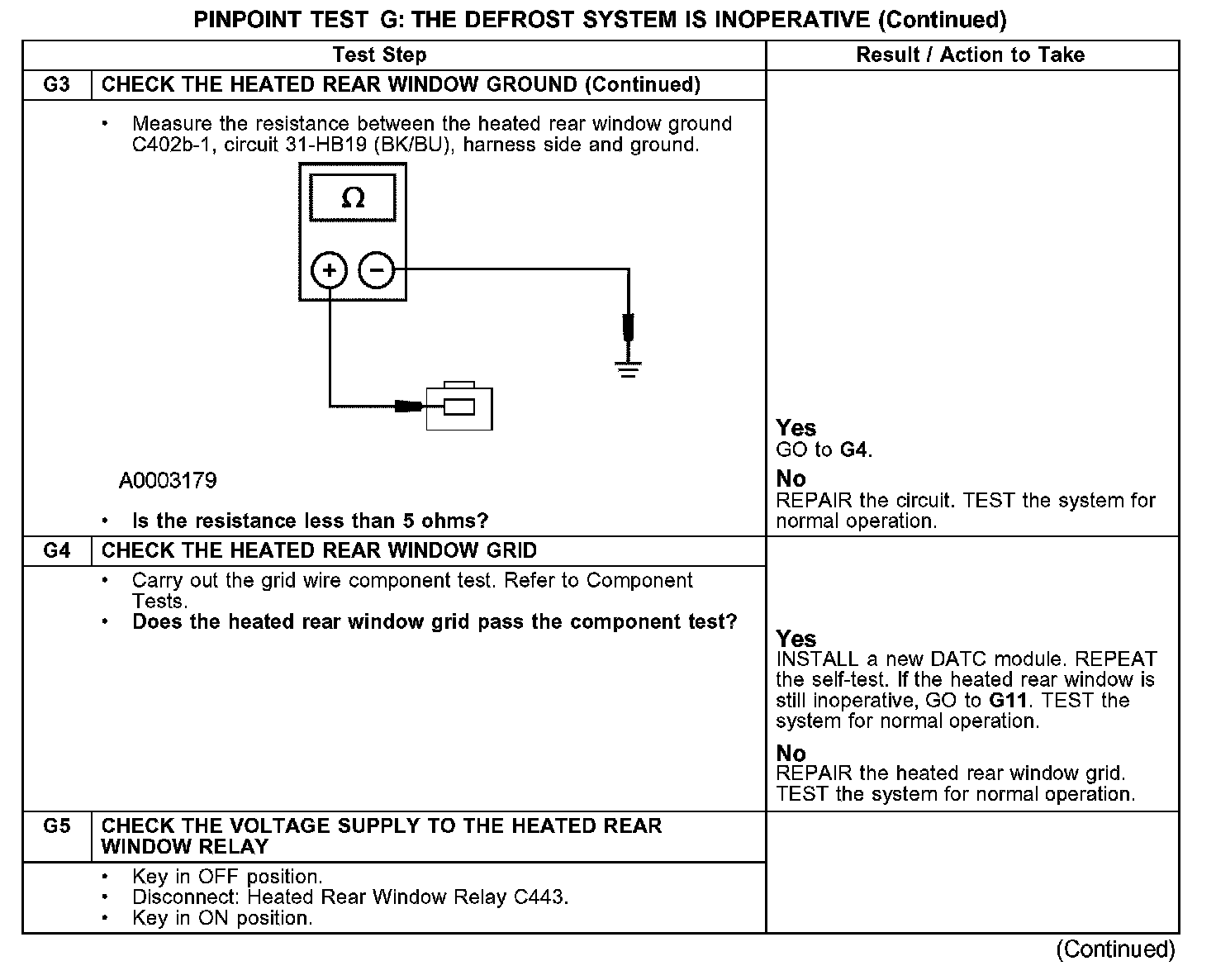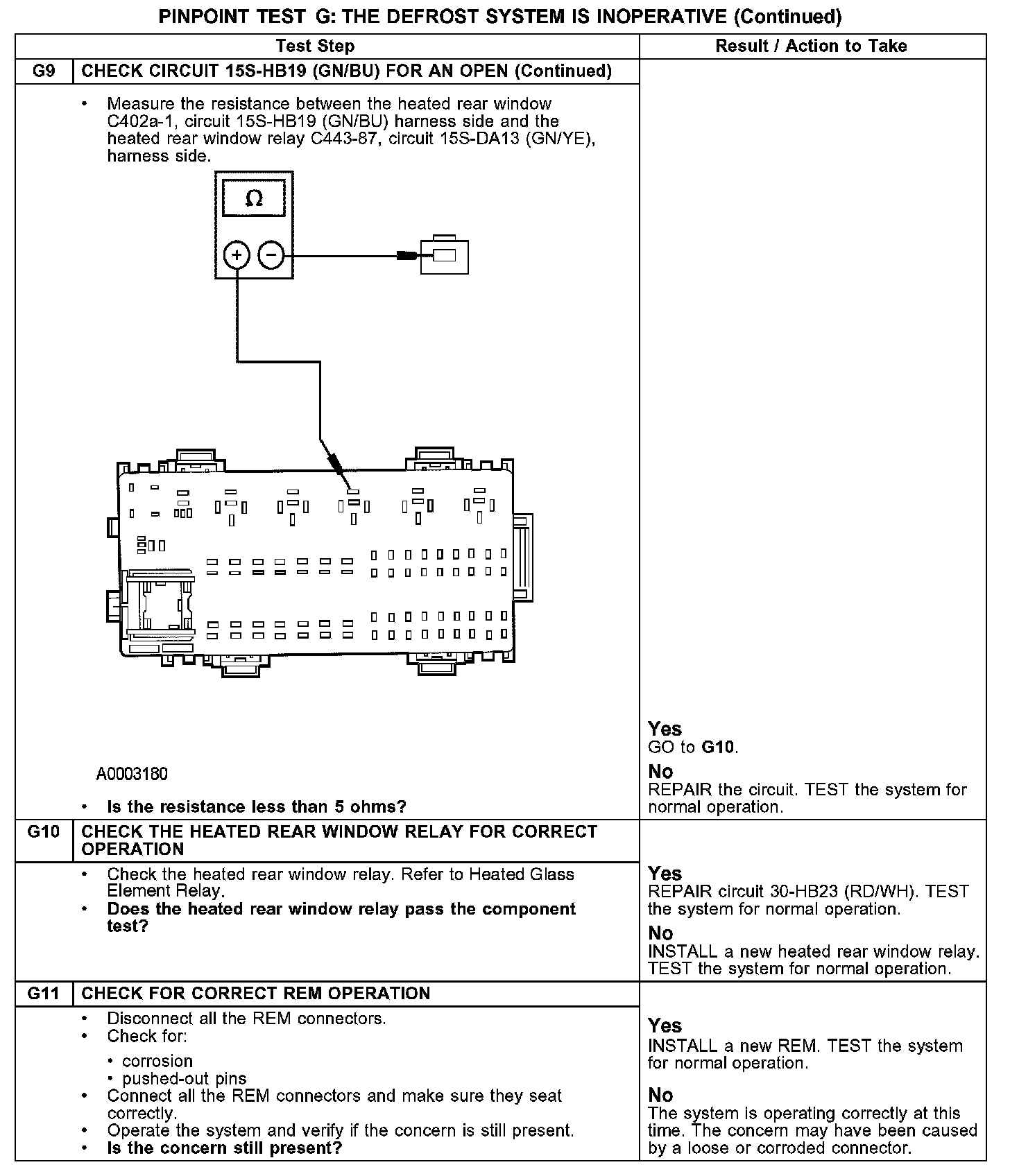 PINPOINT TEST G: THE DEFROST SYSTEM IS INOPERATIVEG1-G3: