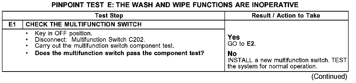 PINPOINT TEST E: THE WASH AND WIPE FUNCTIONS ARE INOPERATIVEE1: