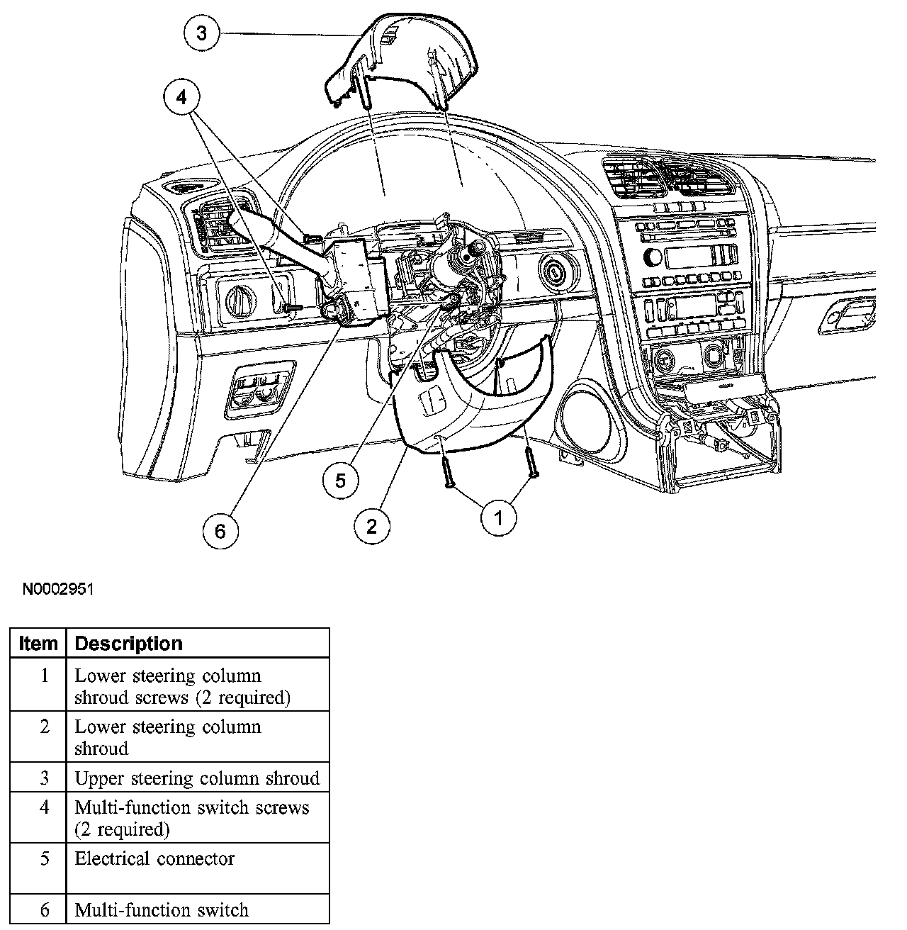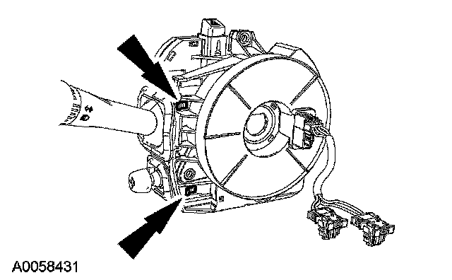9. Release the 2 tabs and slide the multi-function switch out of the clockspring.