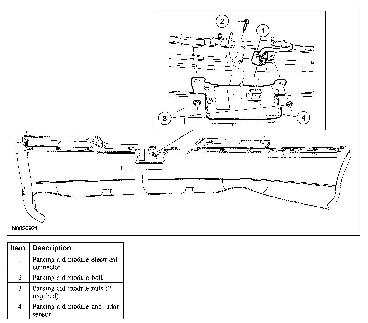 2. Disconnect the parking aid module electrical connector.