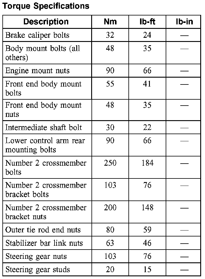 Torque Specifications: