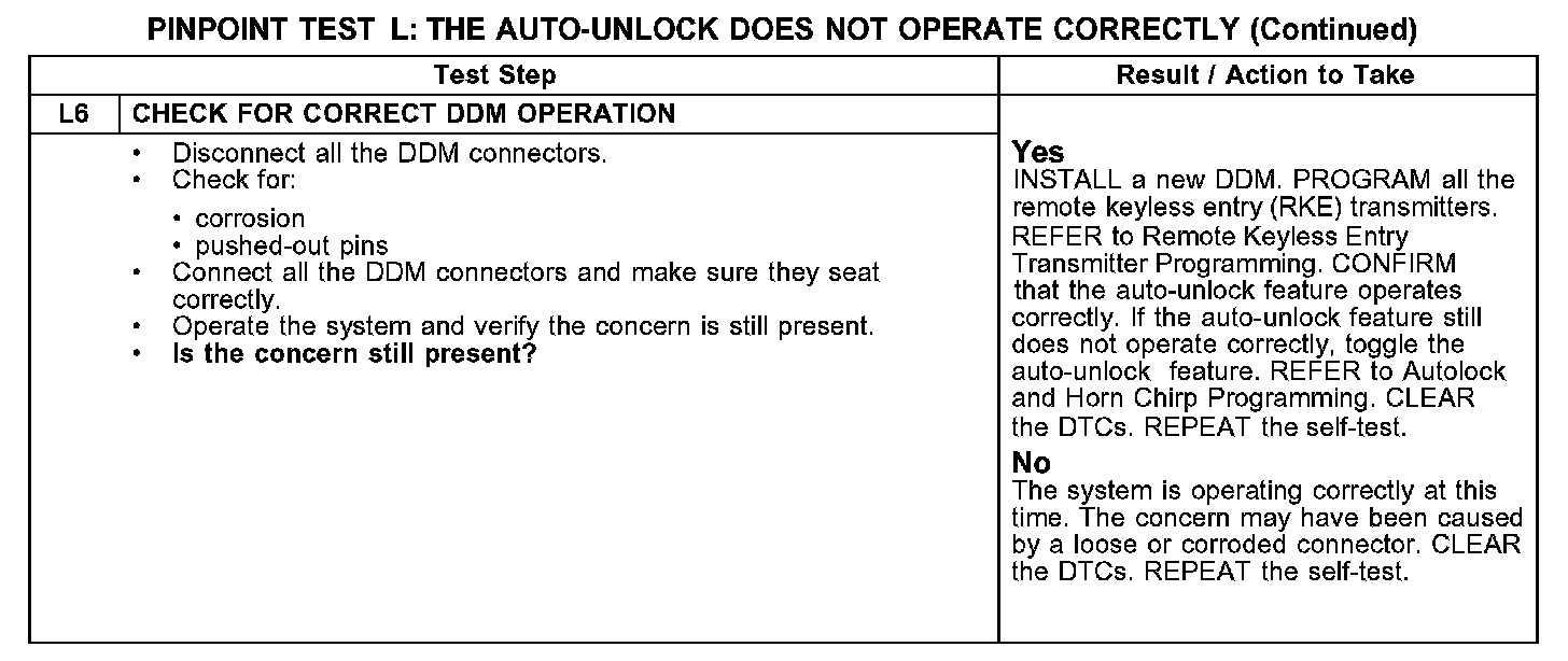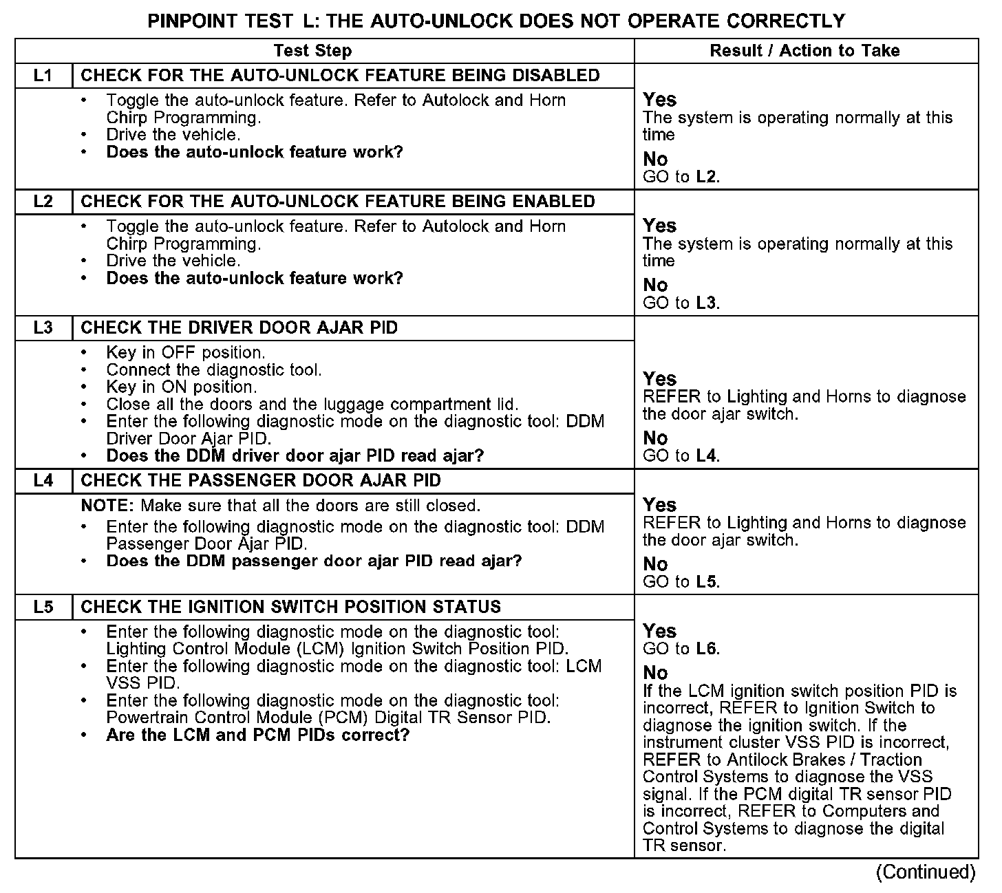 PINPOINT TEST L: THE AUTO-UNLOCK DOES NOT OPERATE CORRECTLYL1-L5: