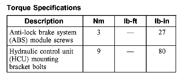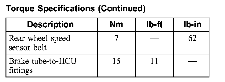 Torque Specifications: