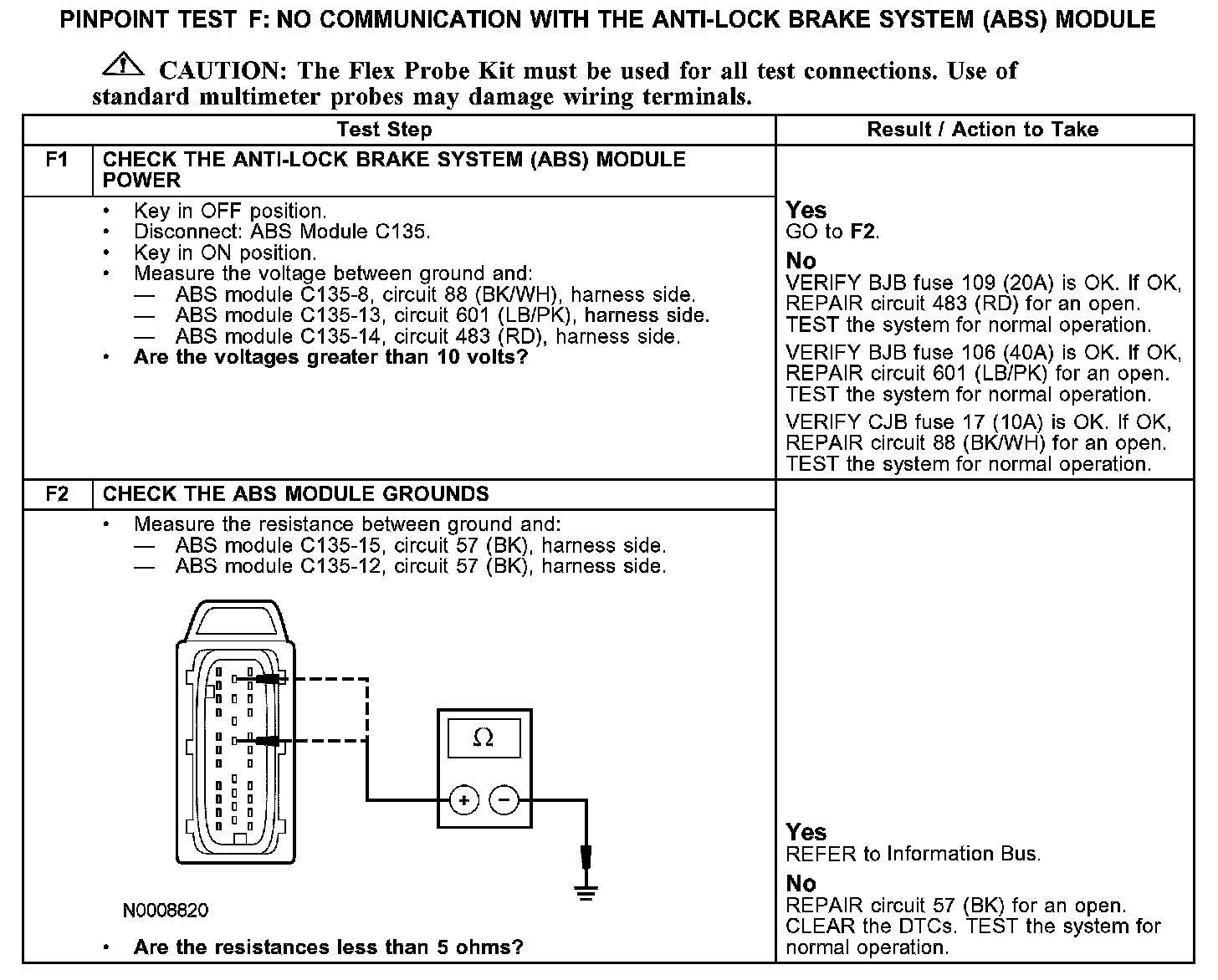 Test F: No Communication With the Anti-Lock Brake System (ABS) Module