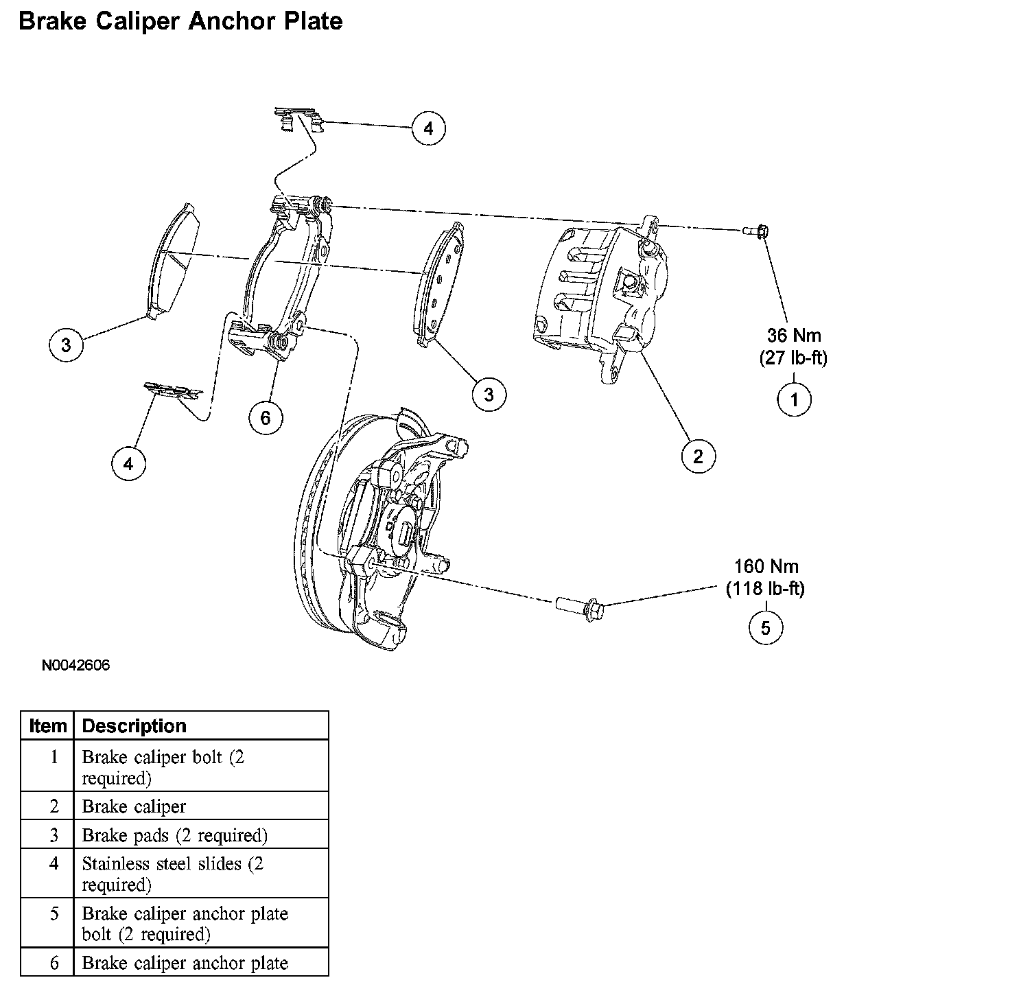 NOTE: When installing the brake caliper anchor plate, new brake caliper anchor plate bolts must be used.