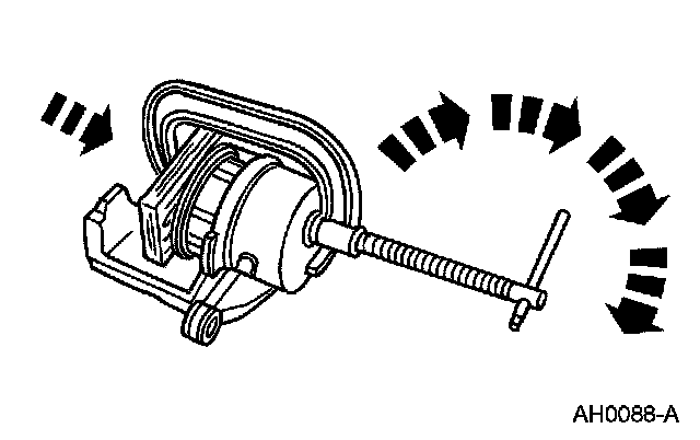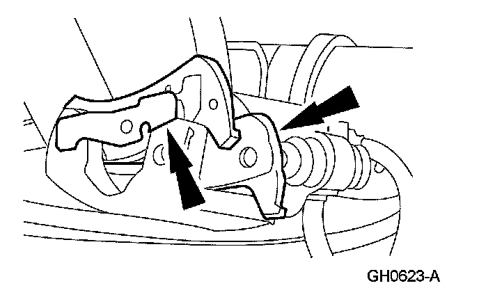 CAUTION: Do not allow the brake caliper to hang from the brake hose or damage to the hose can occur.