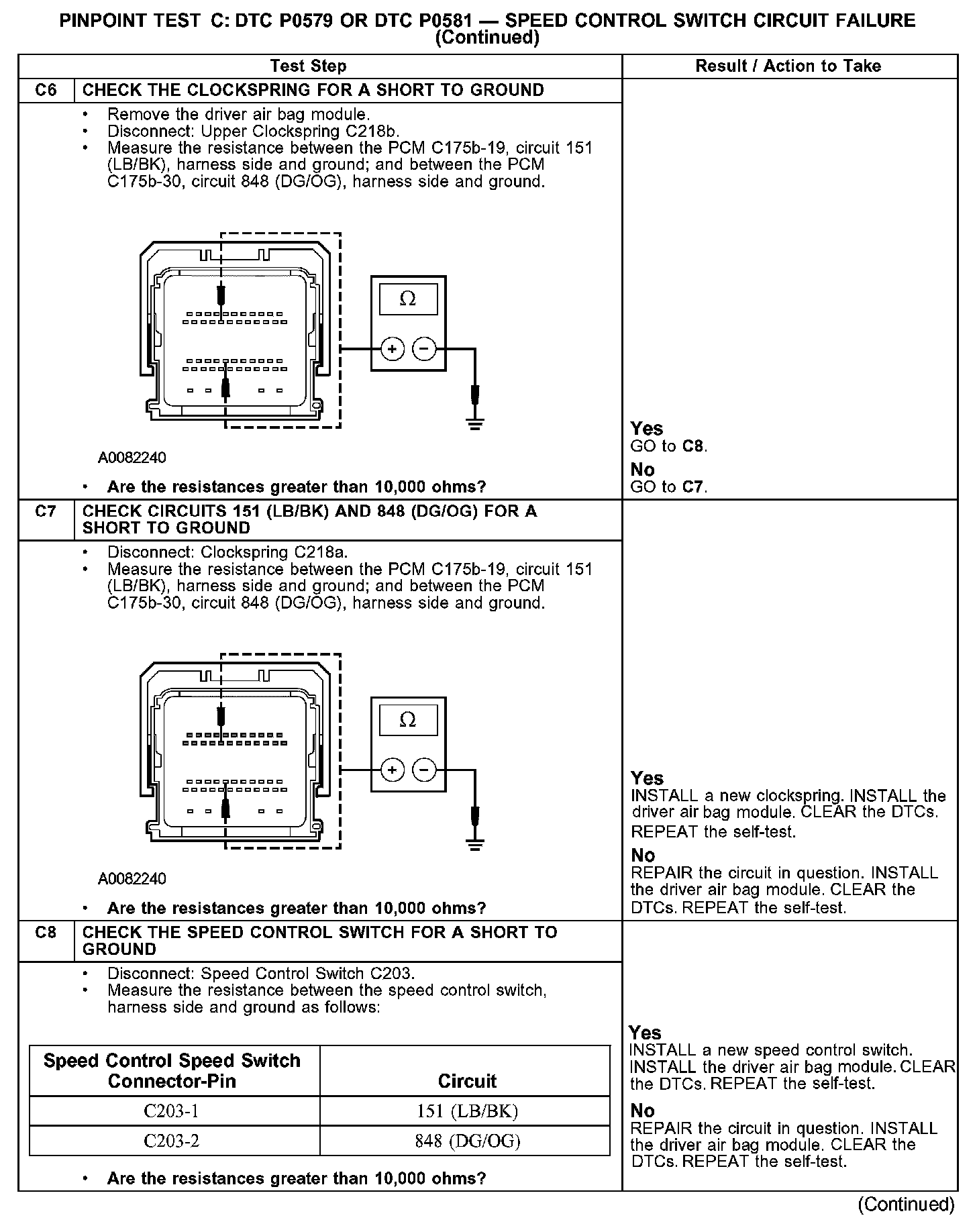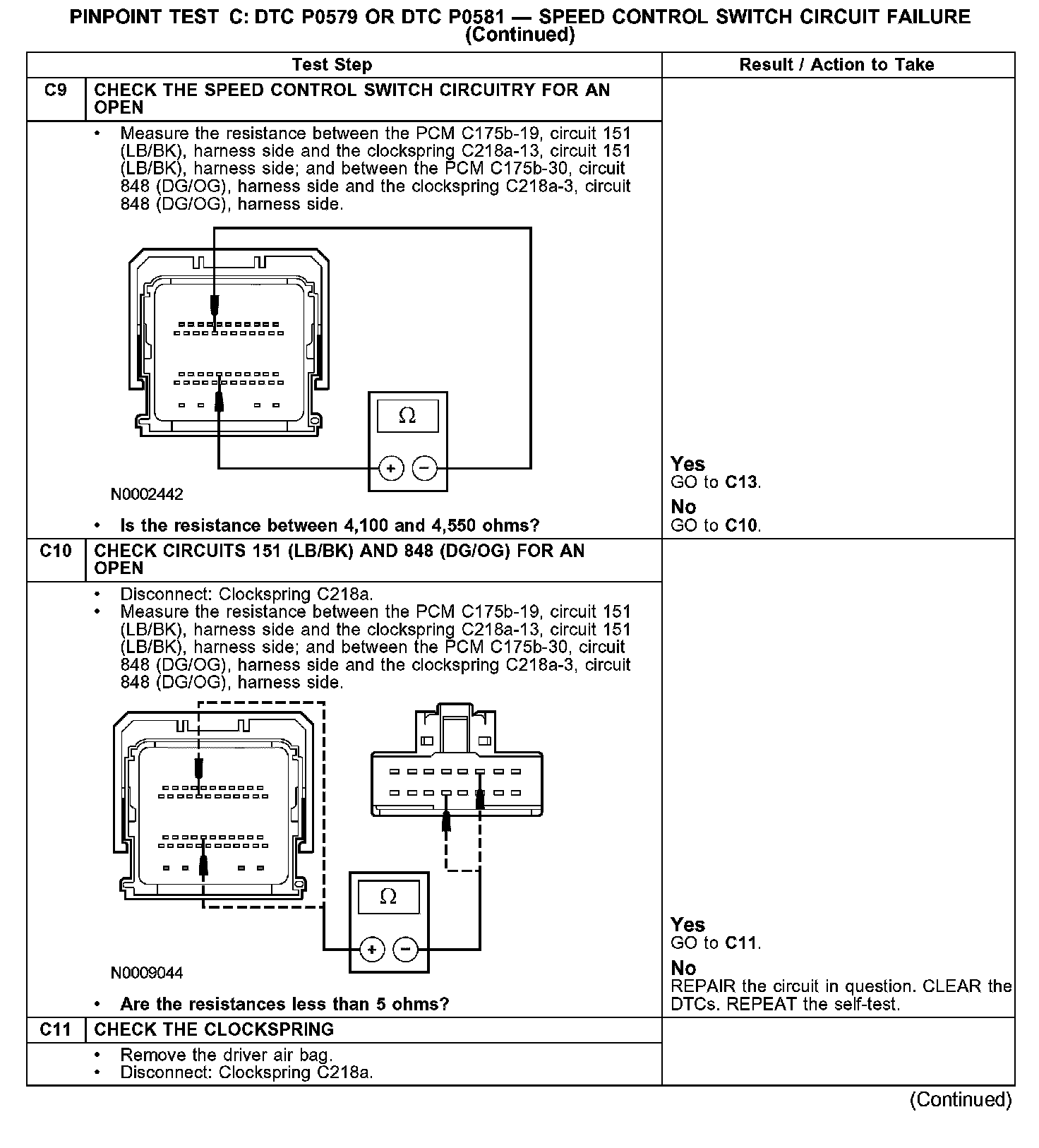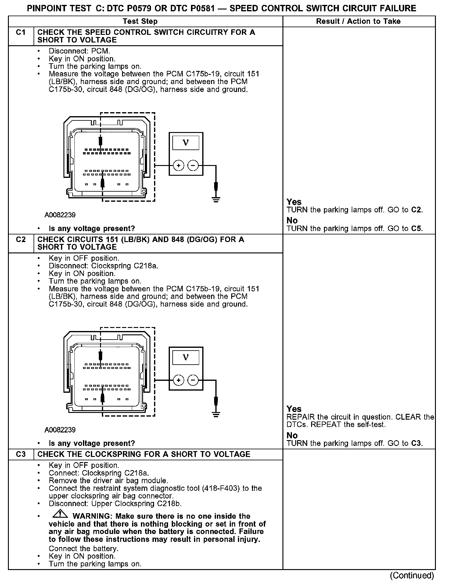 PINPOINT TEST C: DTC P0579 OR DTC P0581 - SPEED CONTROL SWITCH CIRCUIT FAILUREC1-C3: