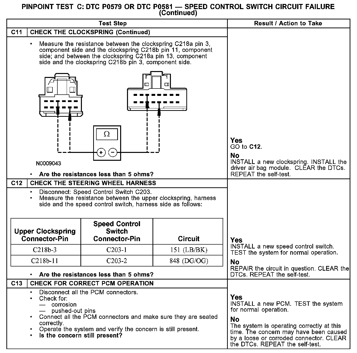 Test C: DTC P0579 Or DTC P0581 - Speed Control Switch Circuit Failure