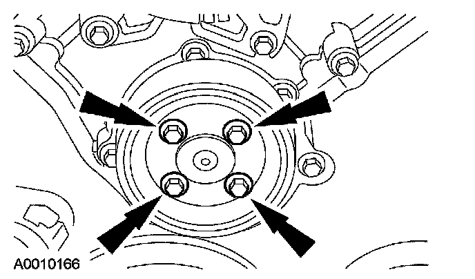 46. Position the coolant pump pulley on the coolant pump and install the bolts.