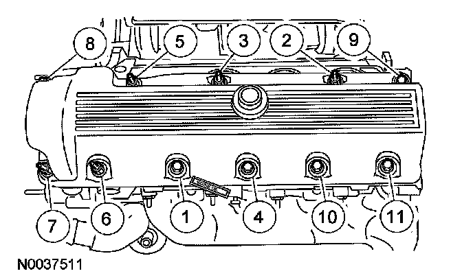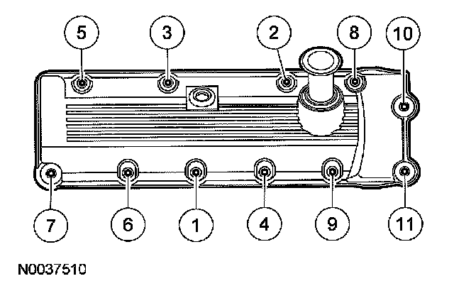 51. Install the gasket into the valve cover and position on the cylinder head. Tighten the bolts in the sequence shown.