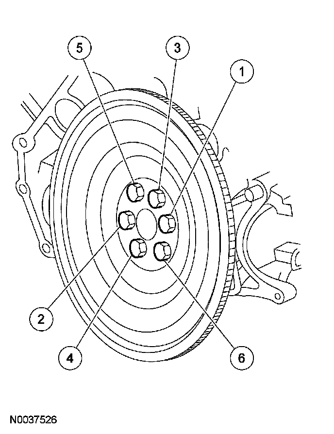 85. Position the flexplate and install the bolts in the sequence shown.