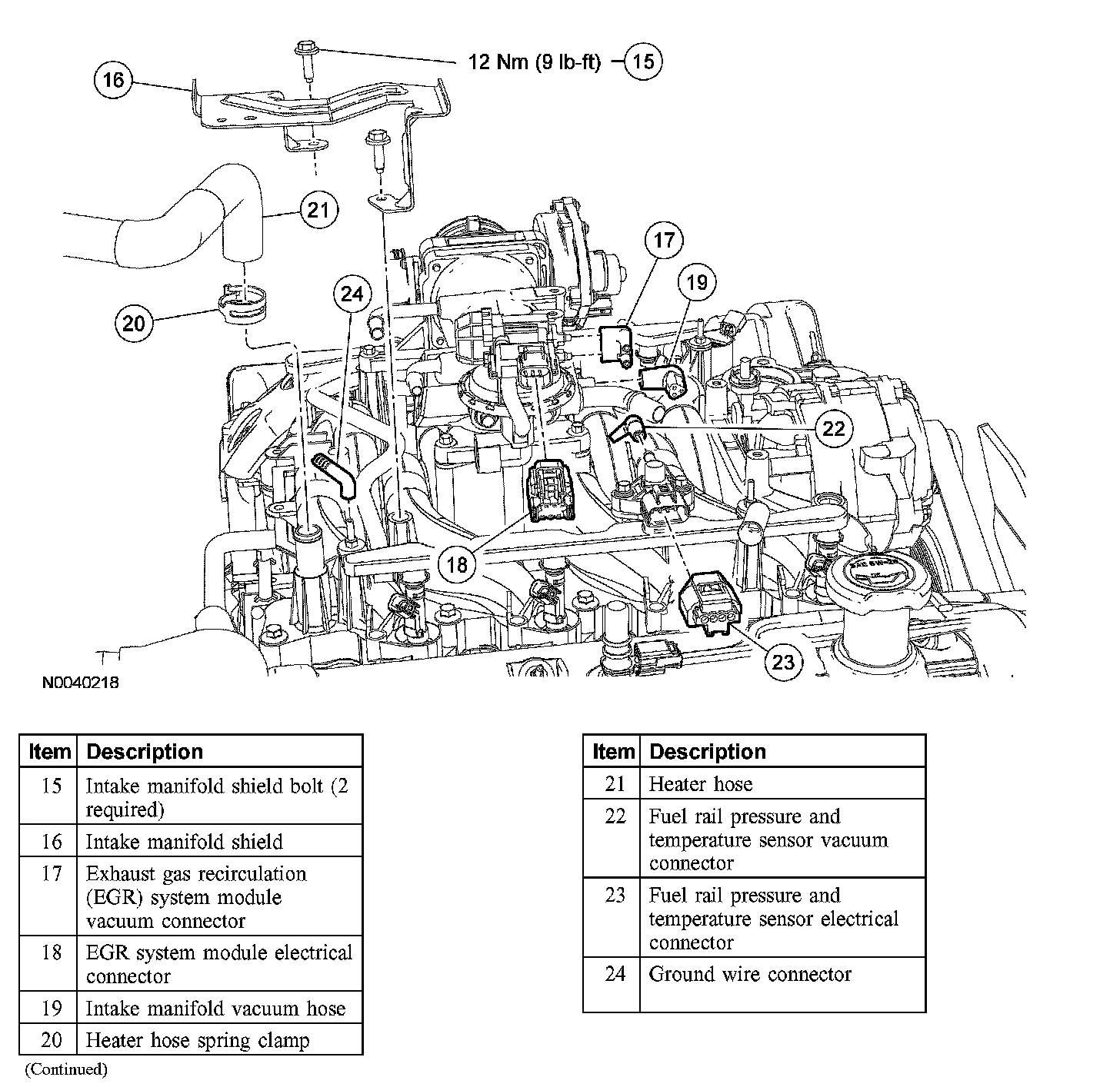 8. Install the intake manifold shield and the 2 bolts.