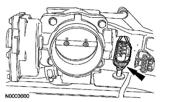 13. Connect the evaporative emission (EVAP) canister purge valve hoses to the TB and the EVAP canister purge valve. For additional information, refer to Fuel Delivery and Air Induction.