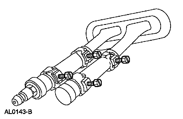 3. Install a short piece of heater water hose, approximately 100 mm (4 in) long on each heater core tube.