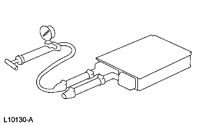 8. If the pressure drops, check the heater water hose connections to the core tubes for leaks. If the heater water hoses do not leak, remove the heater core from the vehicle and carry out the bench test.