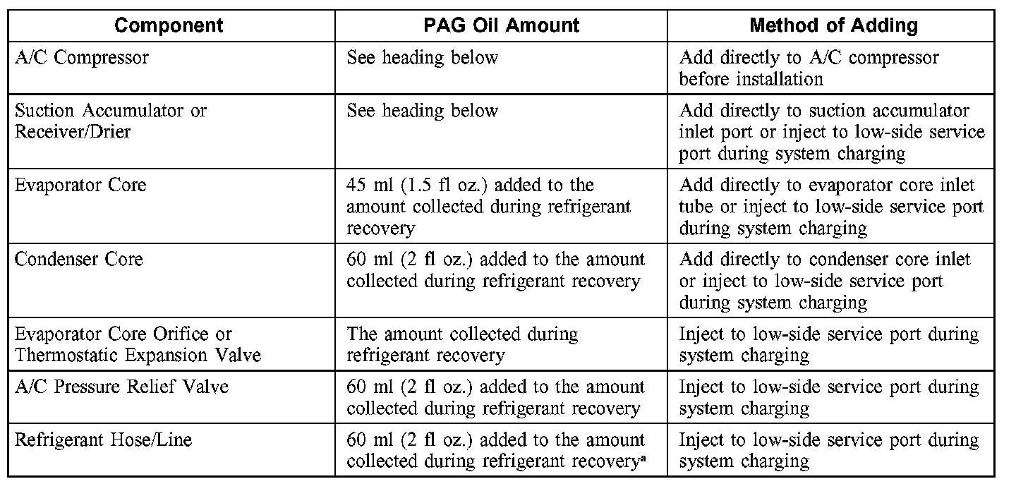 Refrigerant Oil Adding for New Suction Accumulator or Receiver/Drier Installation