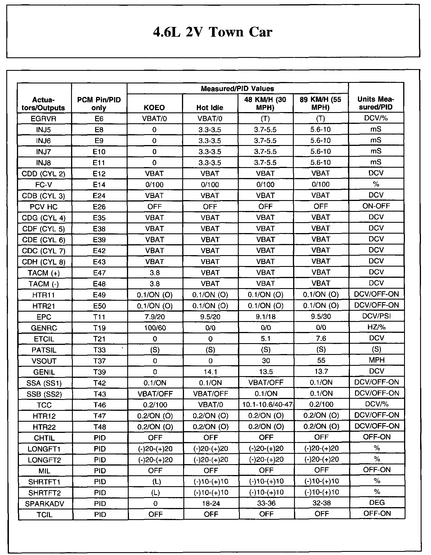 The Typical Diagnostic Reference Value Charts do not display fault parameter identifications (PIDs). These are PIDs which indicate a hard fault with the circuit. They display a value of YES or NO and are PIDs ending with the letter F.