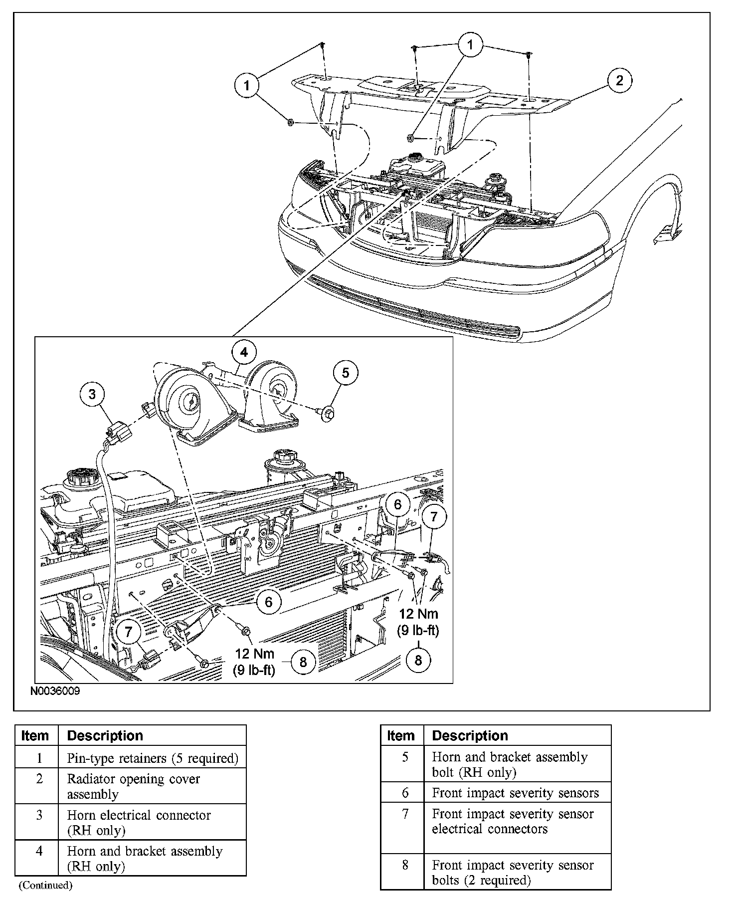 4. Disconnect the horn electrical connector and remove the horn and bracket assembly (RH only).