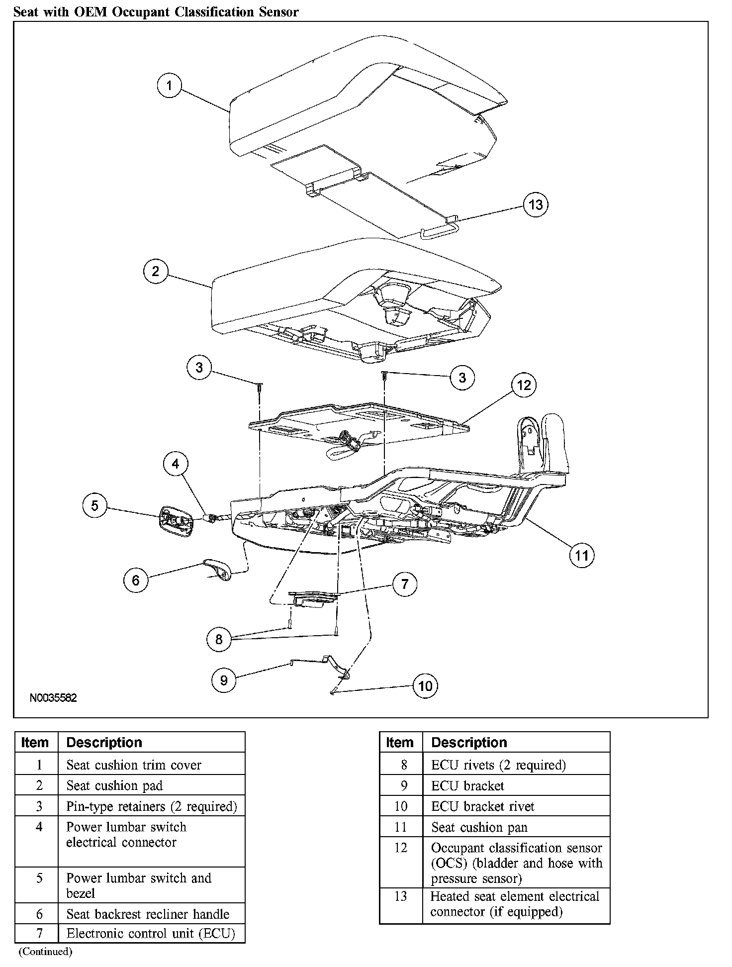 - Occupant classification sensor (OCS) system components (seat cushion foam pad, bladder with pressure sensor and electronic control unit) are calibrated to each other and are serviced as an assembly. The OCS system components are not to be installed separately. If a new OCS system, OCS system component or seat cushion foam pad are needed, a new OCS system service kit (seat cushion foam pad, bladder with pressure sensor and electronic control unit) must be installed as an assembly.