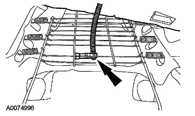 - Feed the pressure sensor with hose through the largest opening at the front of the seat cushion frame support assembly as noted during removal.