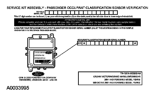 Fill out the necessary information on the OCS traceability card and return it along with the complete inoperative occupant classification sensor to Ford Motor Company.