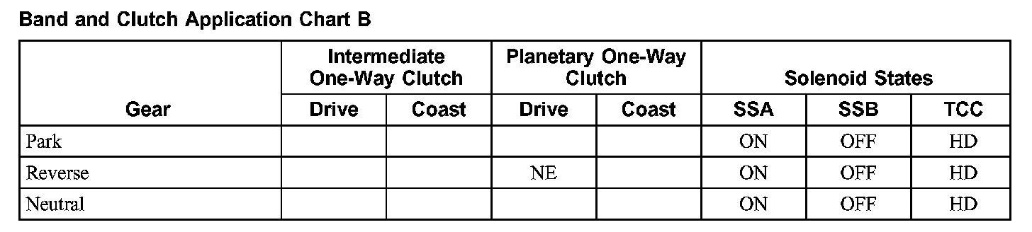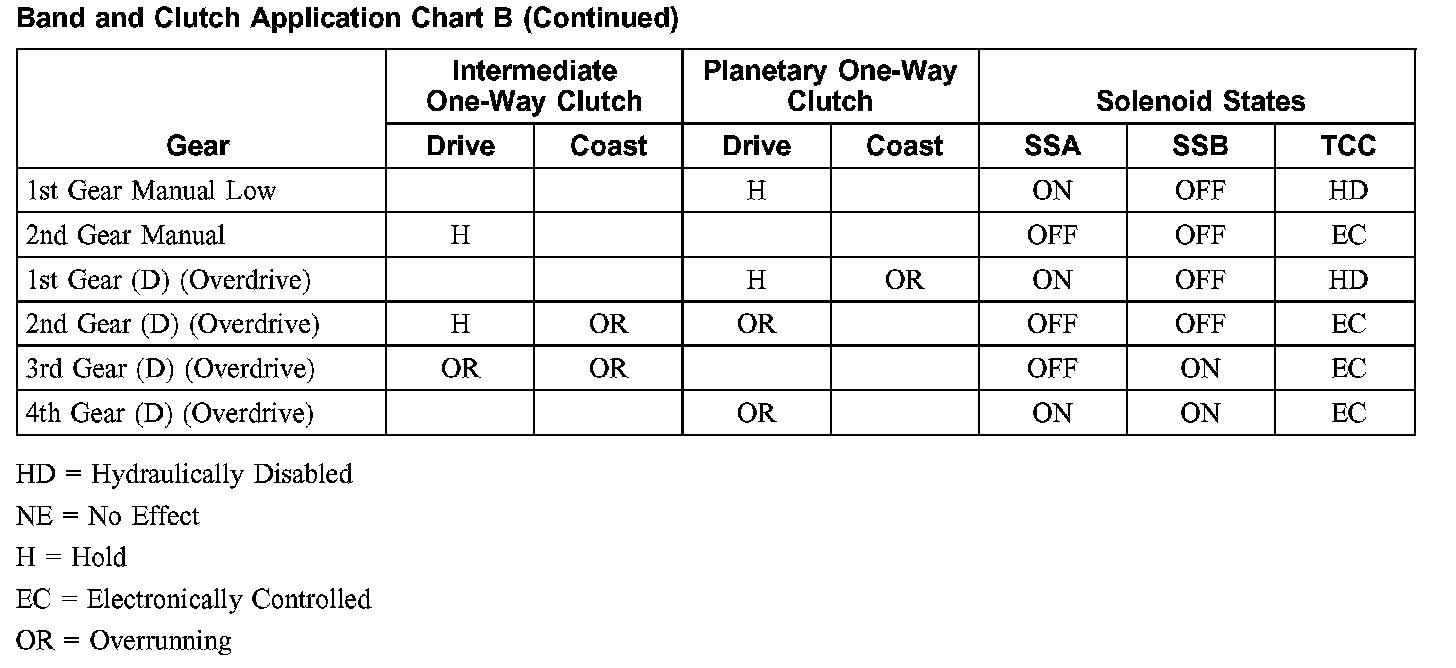 Band and Clutch Application Chart B: