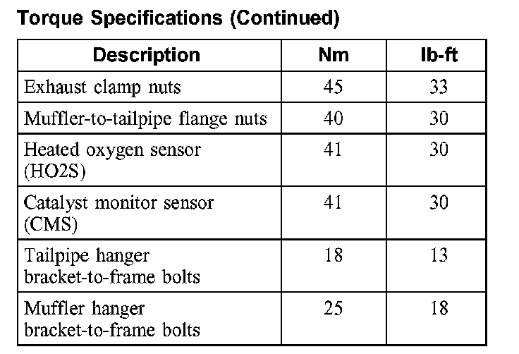 Torque Specifications: