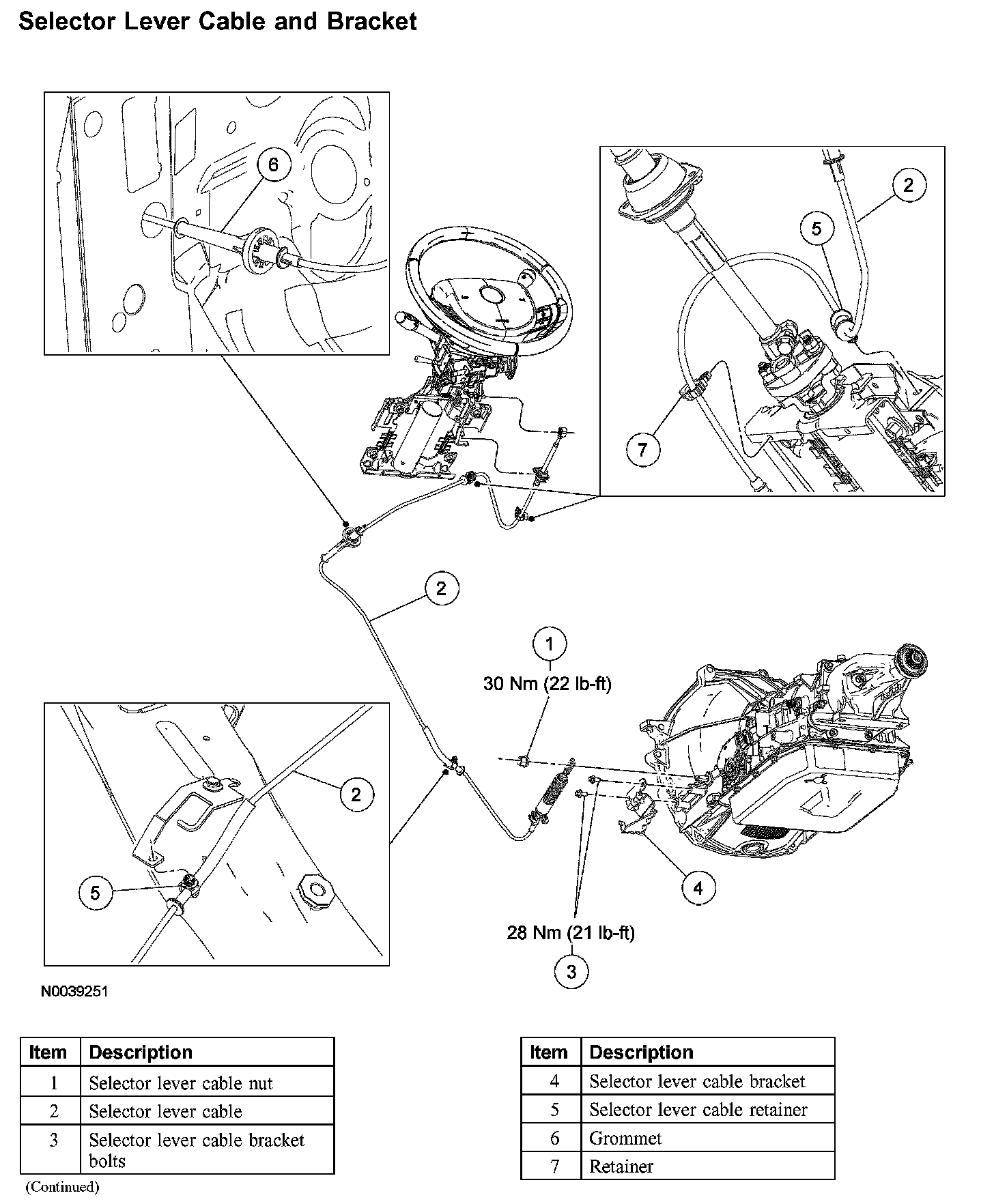 8. From the passenger compartment, remove the shift cable from the vehicle.