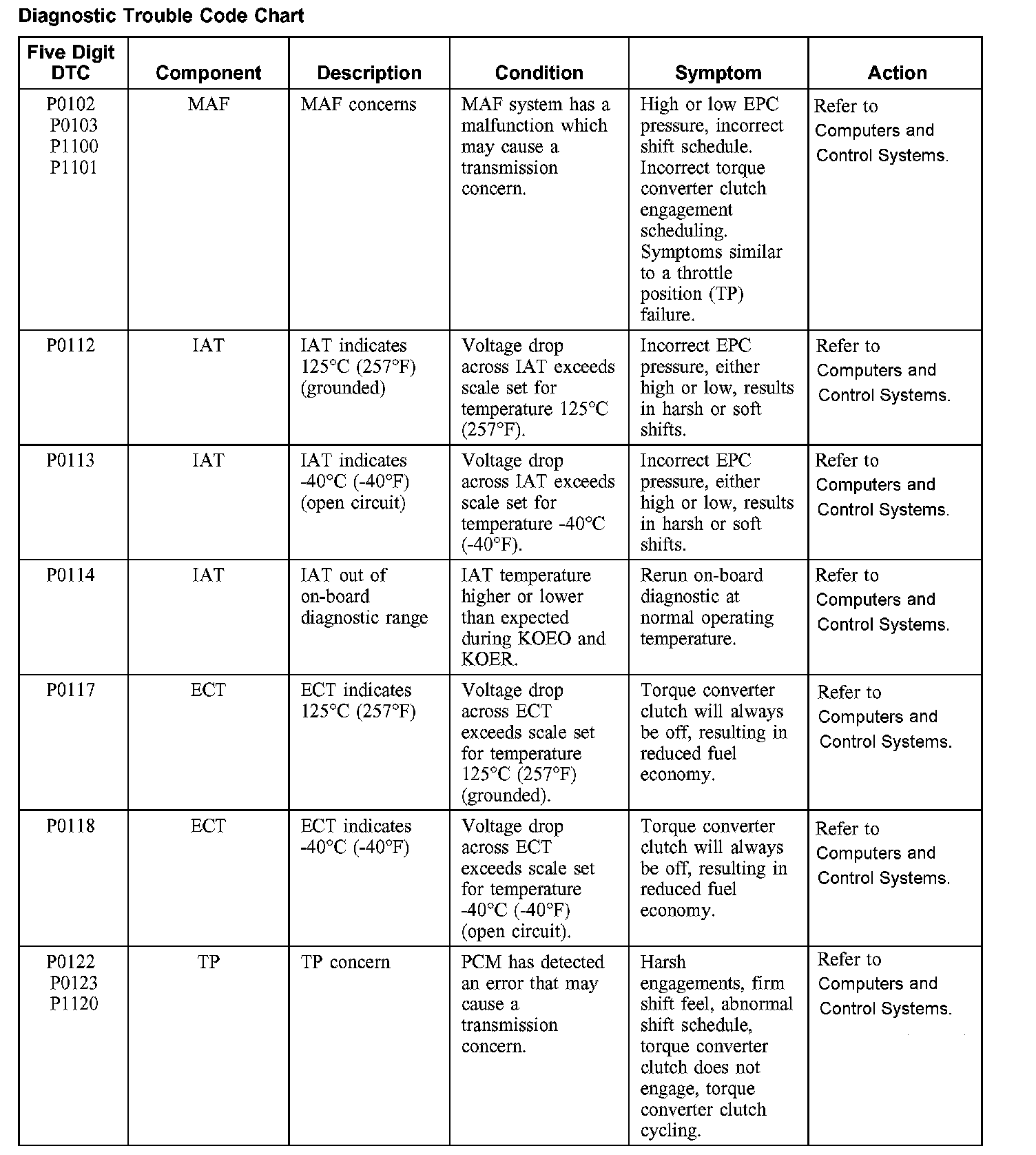 Diagnostic Trouble Code ChartsP0102-P1120: