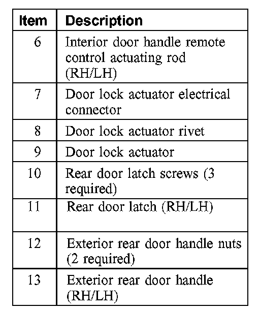 REAR DOOR HANDLES, LOCKS AND LATCHES - EXPLODED VIEW