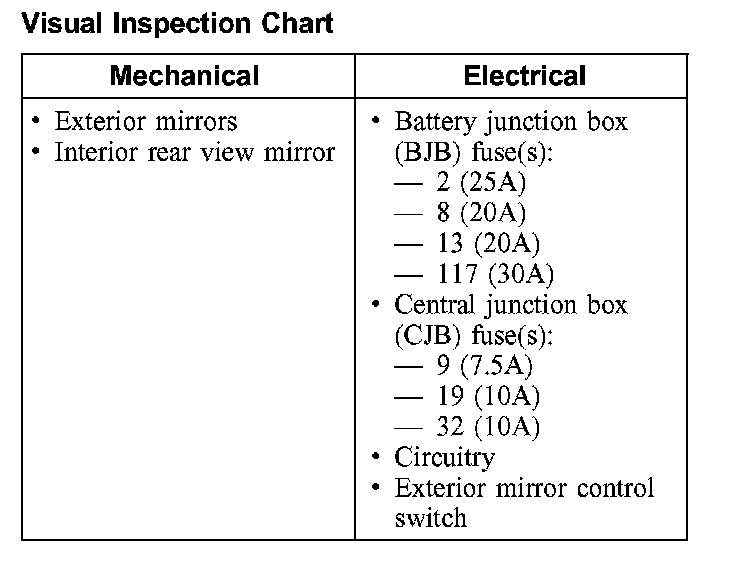 Visual Inspection Chart: