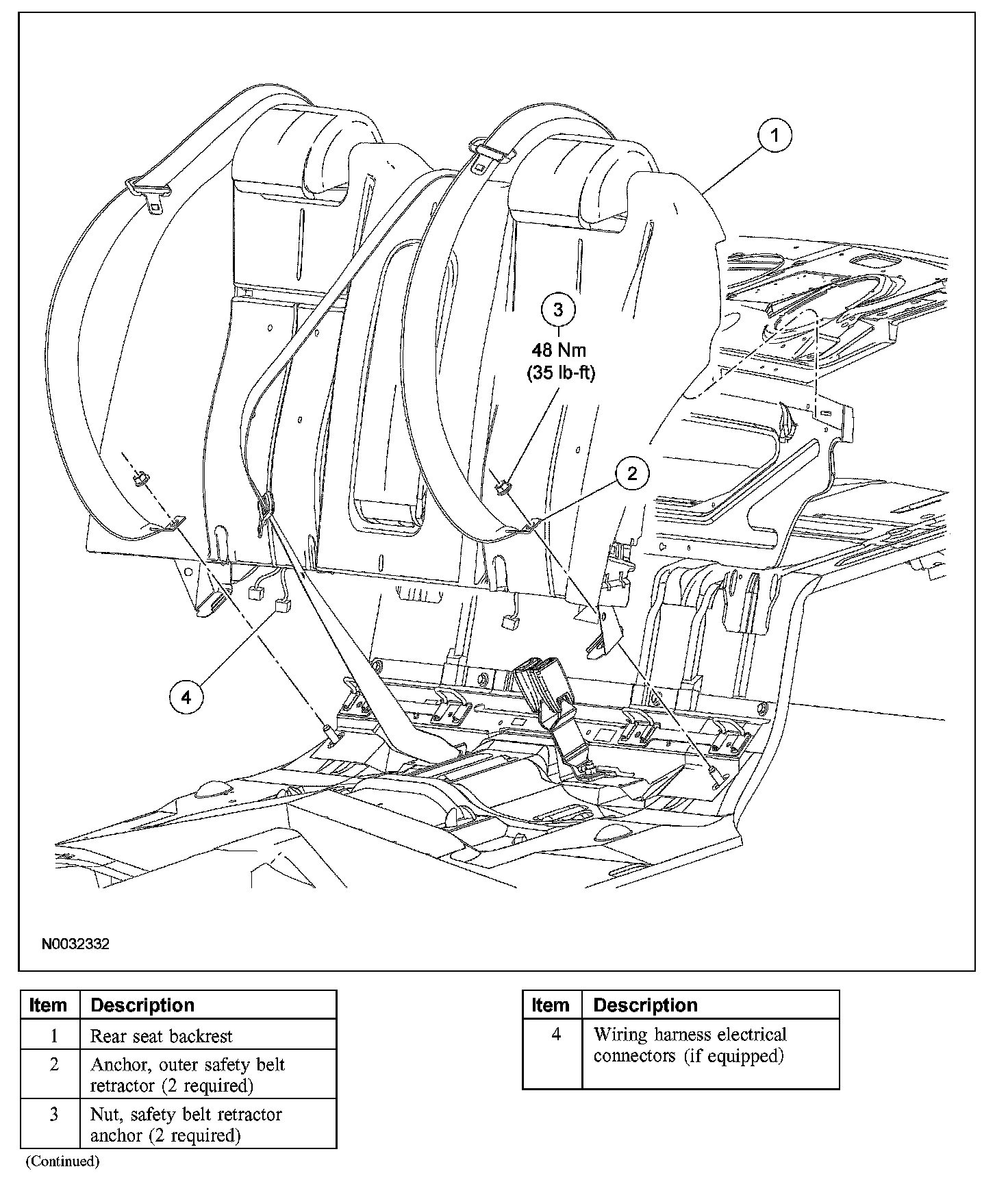 4. WARNING: The retaining wires in the rear seat cushion pad and frame and the rear seat backrest pad and frame back must be fully seated in the retainer brackets to prevent the seat backrest and seat cushion from sliding forward in the event of a collision. Failure to follow these instructions can result in personal injury.