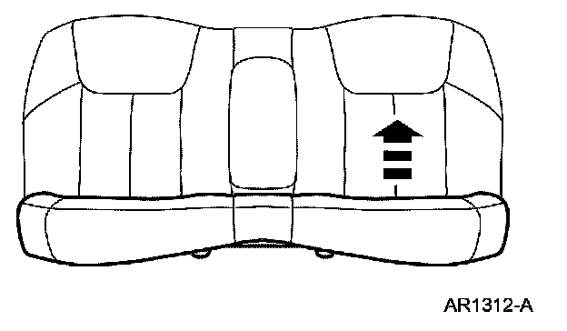 1. Apply pressure to the lower front portion of the rear seat cushion assembly. Push the rear seat cushion REARWARD to disengage the rear seat cushion front retainers. Position the rear seat cushion FORWARD.