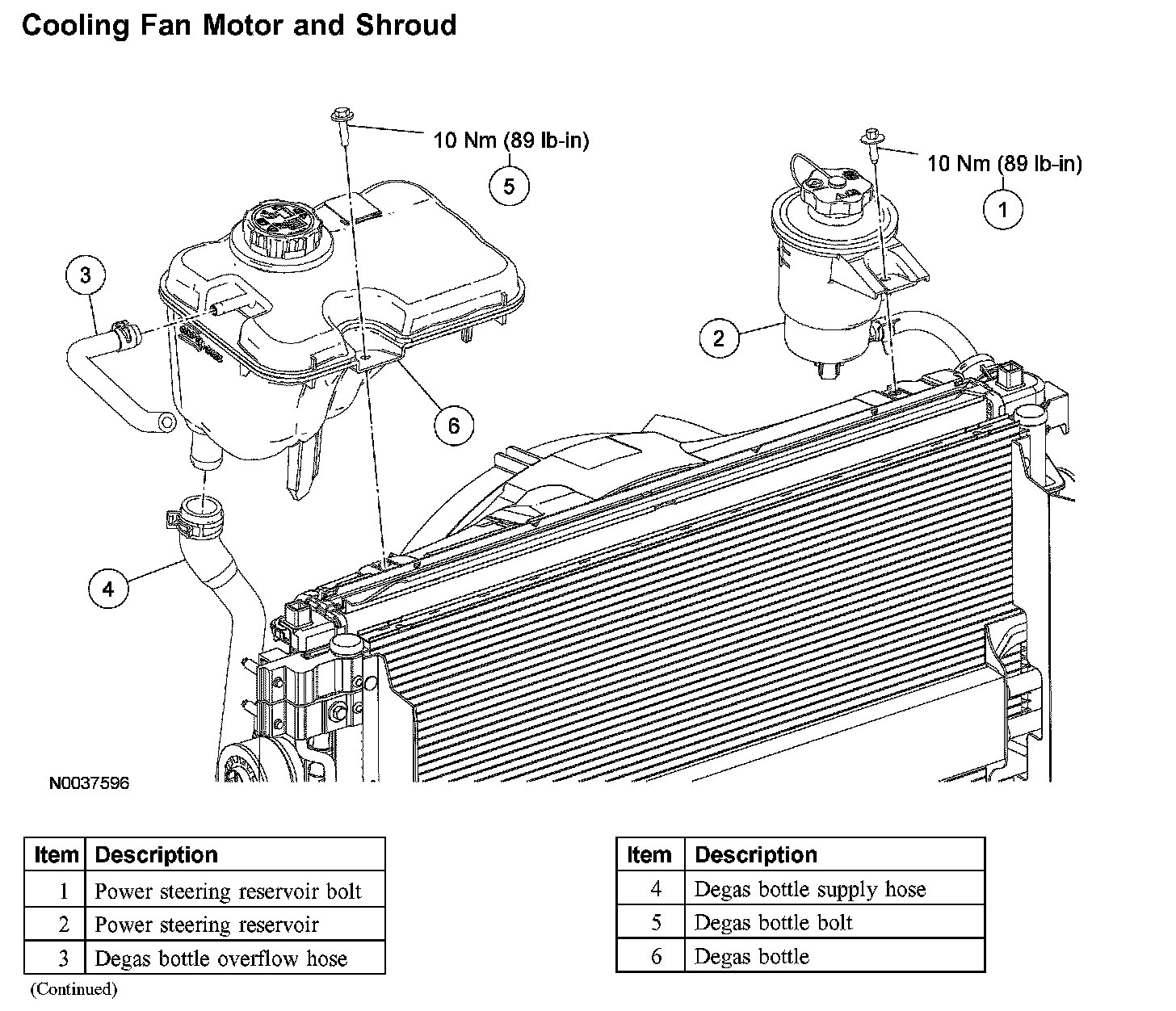 4. Disconnect the degas bottle overflow hose, supply hose and position aside.