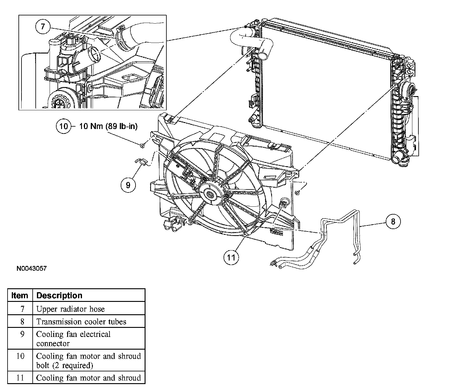 7. Detach the transmission cooler tubes from the cooling fan motor and shroud.