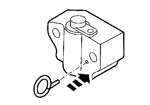 12. Install a paper clip into the hole of each tensioner housing to hold the ratchet assembly and plunger in during installation.
