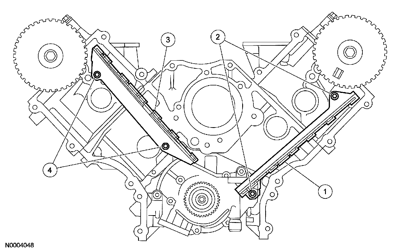 19. Install the timing chain guides.
